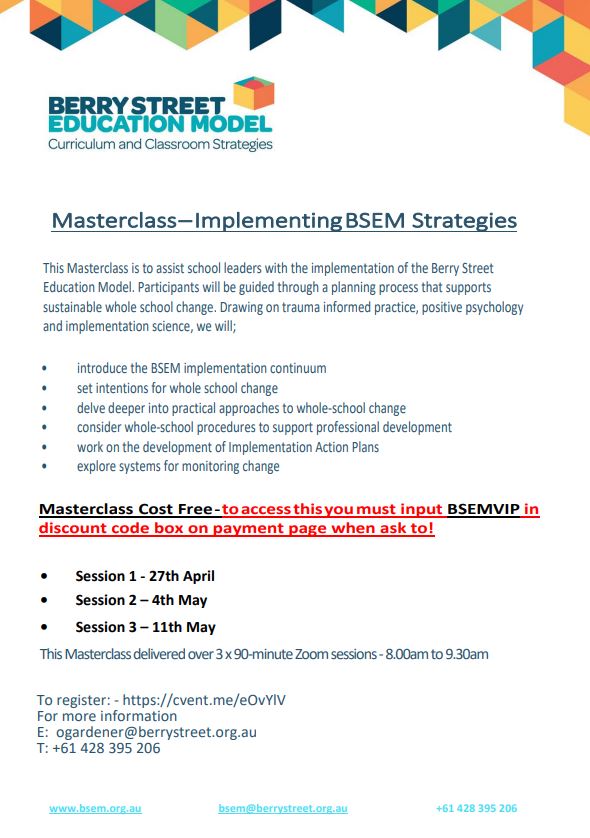 . Web Consultant - Berry Street Education Model Teaching - Secondary Education Training Perth and surrounds preferably with ready access to an airport. Web The Berry Street Education Model BSEM provides strategies that enables teachers to increase engagement of students and to successfully improve students self-regulation. Web The Berry Street Education Model imparts the importance of teachers modelling to students a calm confident well-regulated adult.